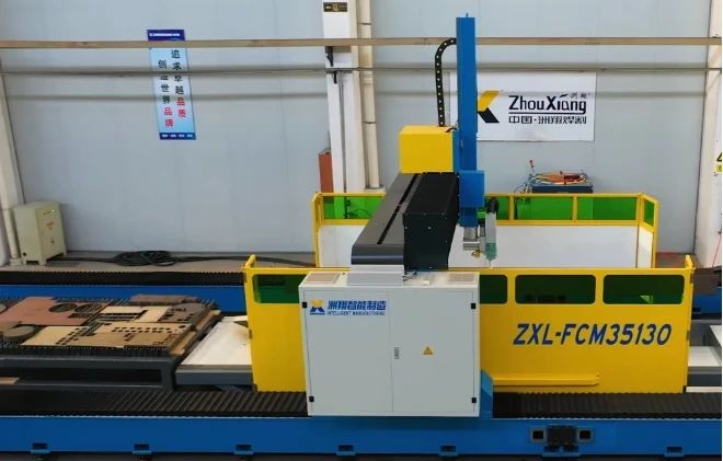 Zhouxiang gantry steel laser secondary processing line adopts the original three-dimensional six-axis five-link technology, with super high efficiency, supports TEKLA steel structure three-dimensional modeling data file cutting, simple operation, fast response, and can realize precise cutting, hole cutting, groove opening, marking, plane cutting and other processing of steel, providing a broad application space for steel structure processing.