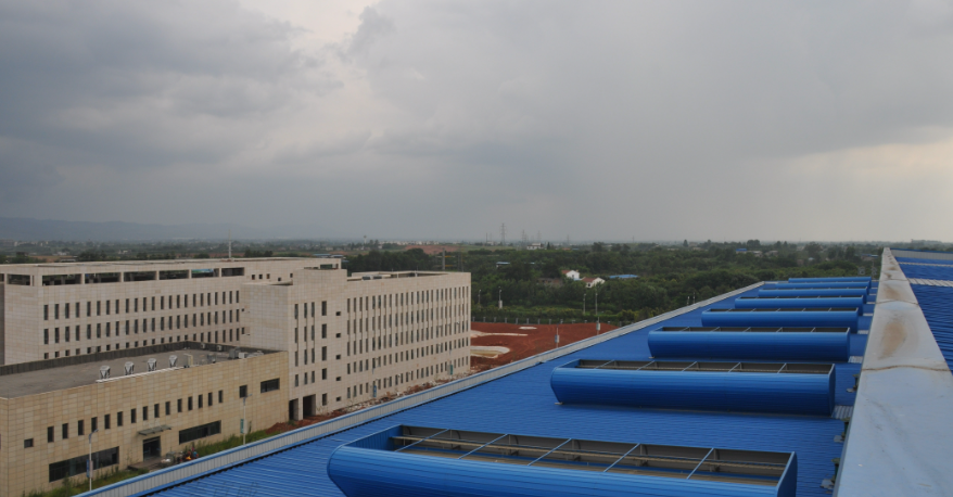 Forced cooling means installing an air cooler on the roof of the workshop. The air cooler uses the principle of water cooling to cool the air, and the strong exhaust fan delivers the cold air to the room. It can keep the indoor temperature of the steel structure workshop at a comfortable temperature of 26-30℃. Its power consumption is equivalent to 1/8 of that of air conditioners. The cost is 1/2 of that of air conditioners, which is a good way to force cooling of workshops.