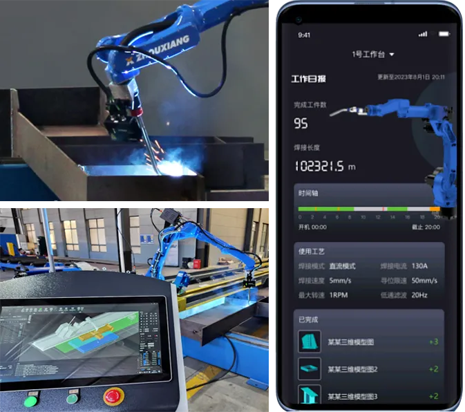 Zhouxiang welding robots can provide customers with efficient, accurate and customized welding solutions. For example, in the steel structure intelligent welding robot production line, it integrates visual positioning, teaching-free system and digital twin technologies to achieve automated intelligent batch welding, helping customers shorten construction period by 30% and reduce labor costs by 40%.